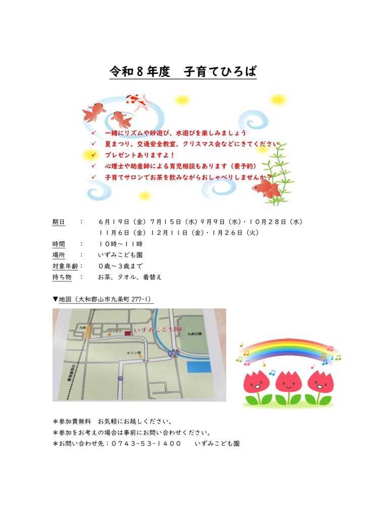 0歳から3歳までのお子様とその保護者の方を対象に「 子育てひろば 」を年に数回開催しております。